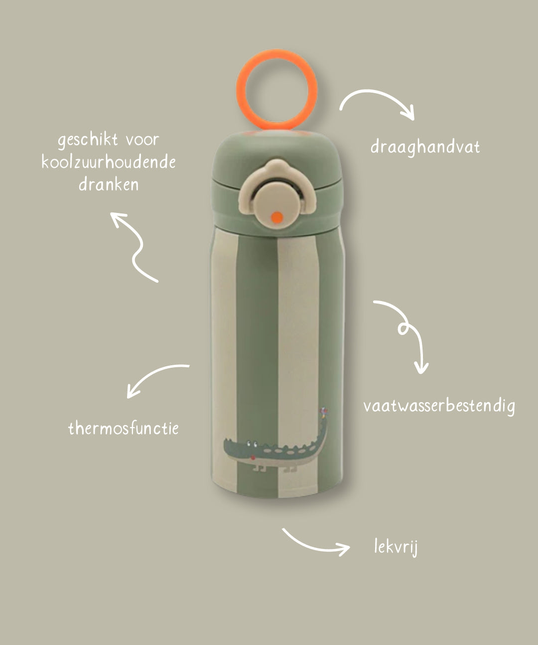 De fles heeft een ruime drinkopening, en omdat je de fles moet kantelen, drinken kinderen op een natuurlijke manier. De dubbelwandige RVS fles houdt dranken lekker lang op temperatuur: warm blijft warm, koud blijft koud. En extra fijn: hij is ook geschikt voor koolzuurhoudende dranken.