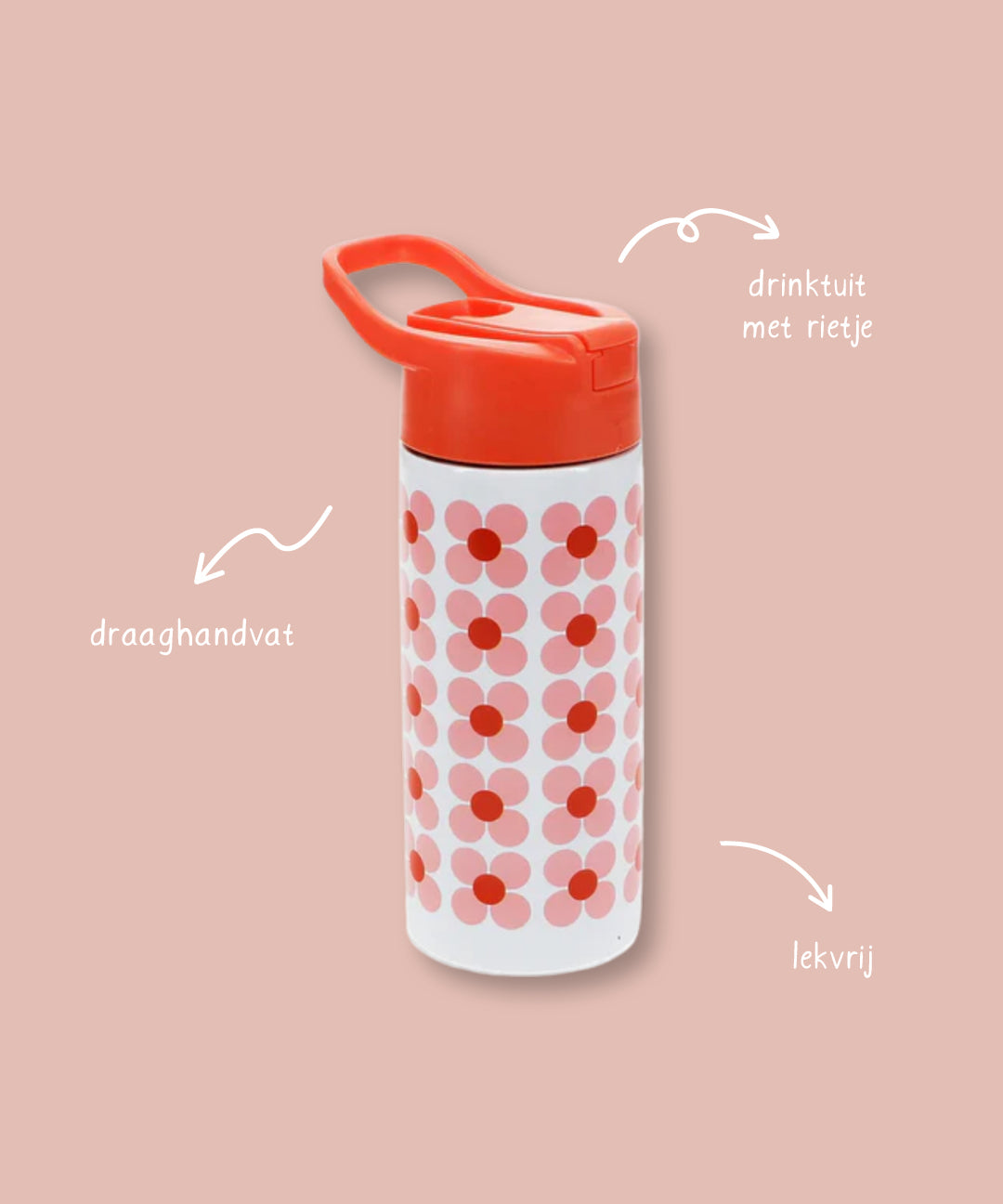 Rex London RVS drinkfles met rietje - de vrolijke favoriet