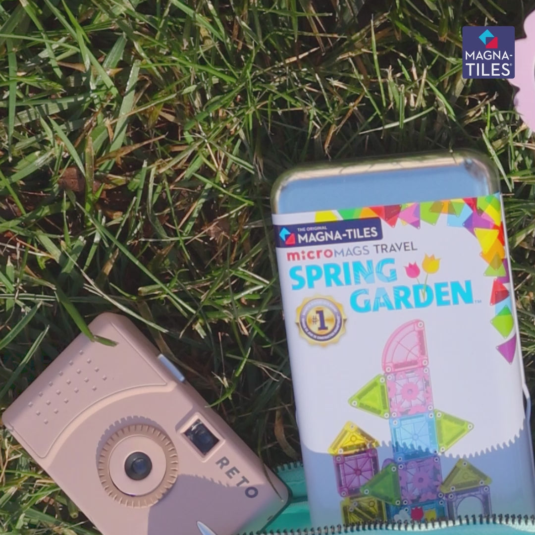 Ce set lumineux de mini tuiles magnétiques « Micromags Spring Garden 24-piece Travel Set » de la marque MAGNA-TILES est parfait pour les déplacements, les vacances ou tout simplement pour jouer à la table de la cuisine.